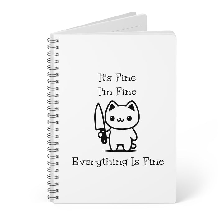 Un notebook à spirales qui résume parfaitement l’art de survivre au quotidien : “It’s fine, I’m fine, everything is fine”.